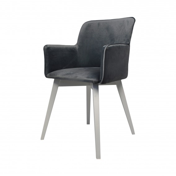 Krzesło tapicerowane do jadalni VIKI to połączenie nowoczesnej formy z klasycznym wykończeniem. Zabudowana bryła z gładką tapicerką i zintegrowanymi,tapicerowanymi podłokietnikami tworzy elegancką, opływową sylwetkę, która zapewnia komfort i styl w każdym wnętrzu. Zaokrąglone linie i pełna forma nadają krzesłu przytulnego, a jednocześnie nowoczesnego charakteru.