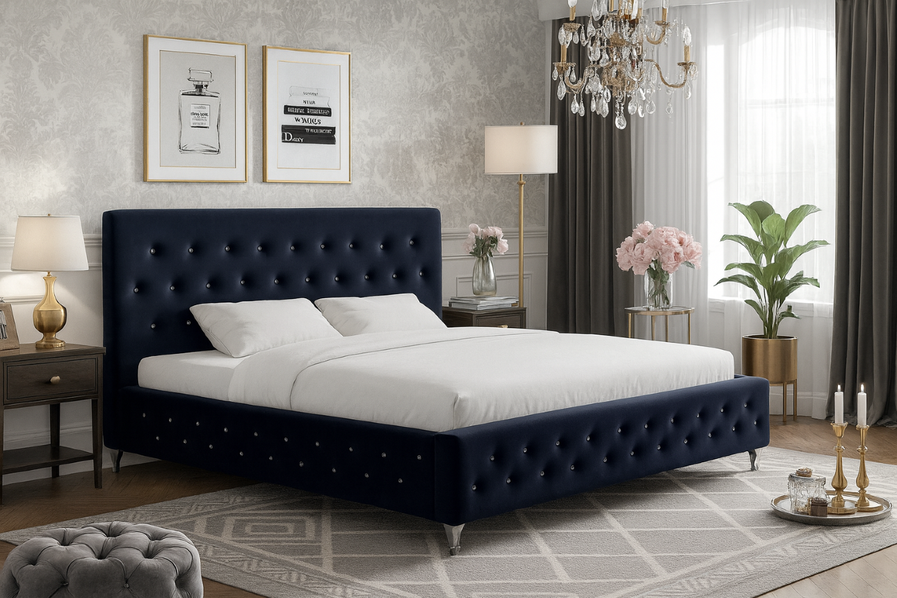 Łóżko do sypialnia stylu glamour. Z pewnością zachwyci osoby mające eleganckie piękne wnętrza.