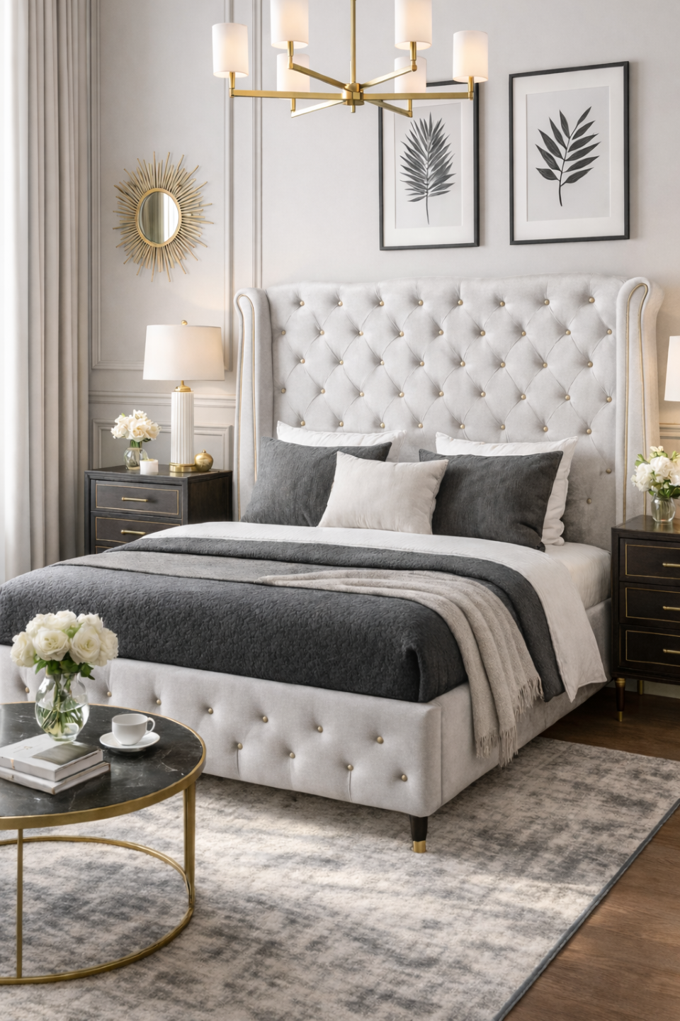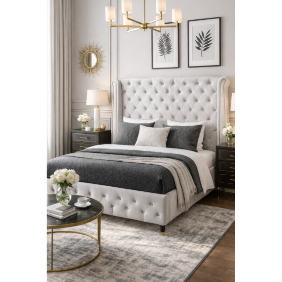 Łóżko do sypialnia stylu glamour. Z pewnością zachwyci osoby mające eleganckie piękne wnętrza.