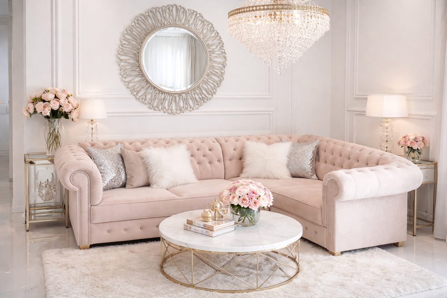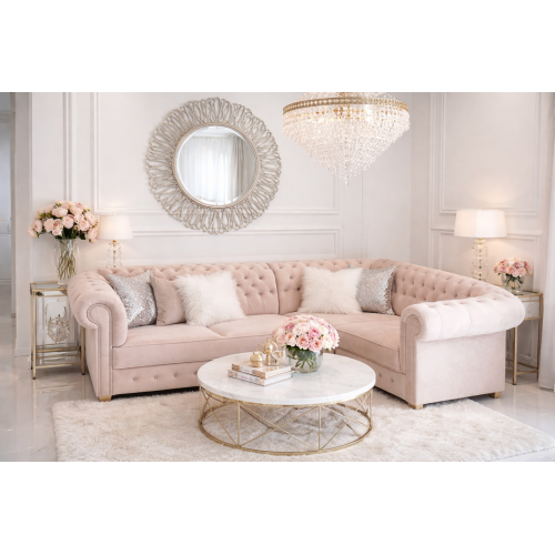 Narożnik w stylu Chesterfield! Elegancki, Glamour z dodatkami srebrnymi lub złotymi.