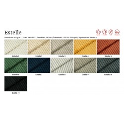 Tkanina Estelle to doskonały przykład wysokiej jakości, różnorodności kolorów oraz praktycznych właściwości użytkowych. Jest idealnym materiałem obiciowym do tapicerowania różnego rodzaju mebli, w tym sof, kanap, krzeseł i foteli, oferując nie tylko estetyczny wygląd, ale także solidność i niezrównany komfort użytkowania.