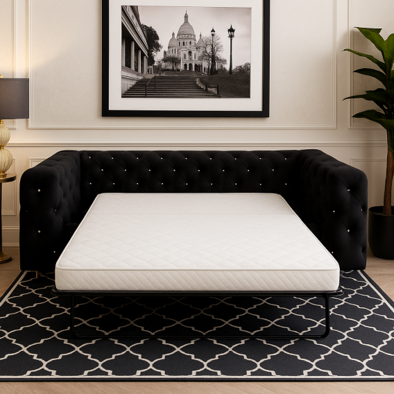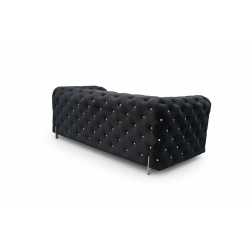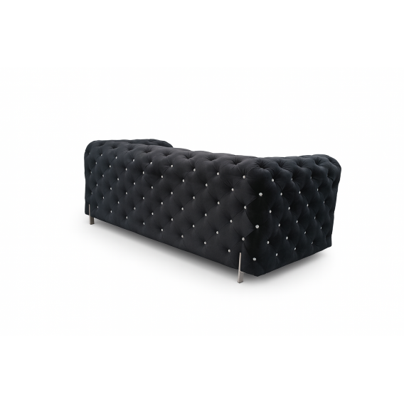 Elegancki tył mebla pikowany kryształkami. Sofa może z pewnością stać na środku w salonie jako mebel wolnostojący.