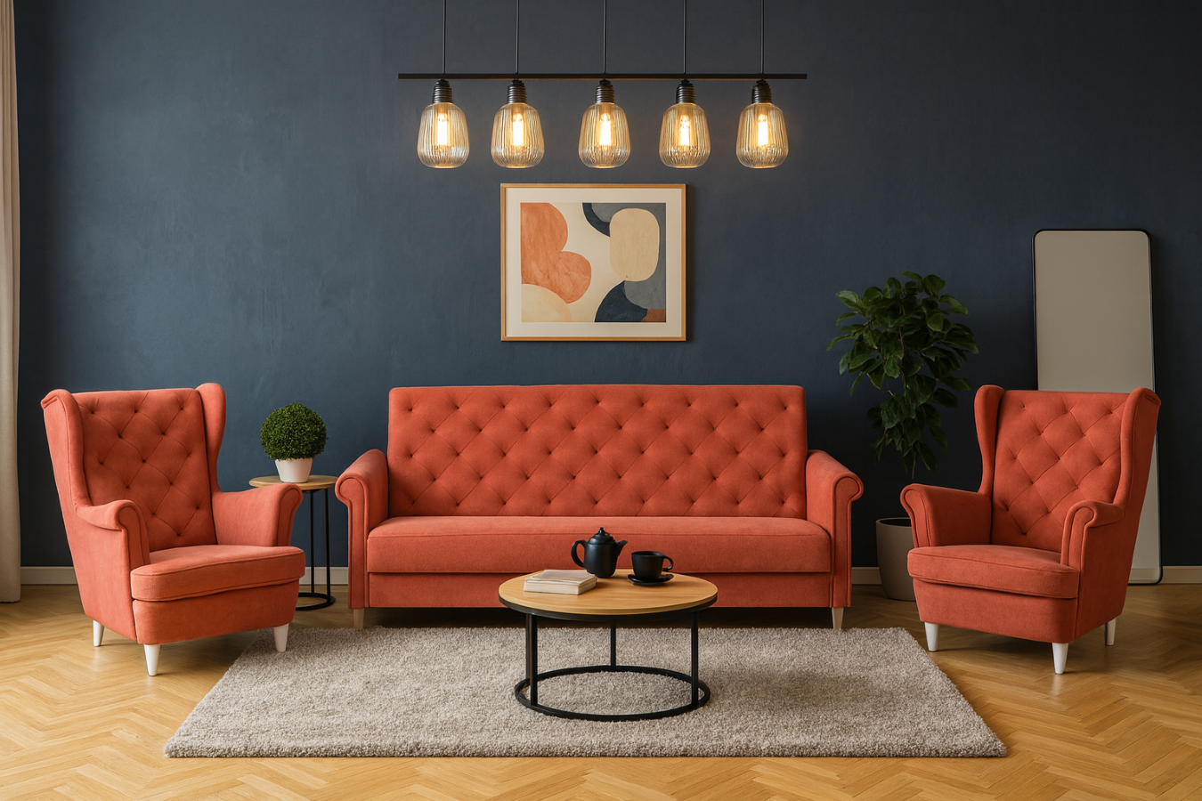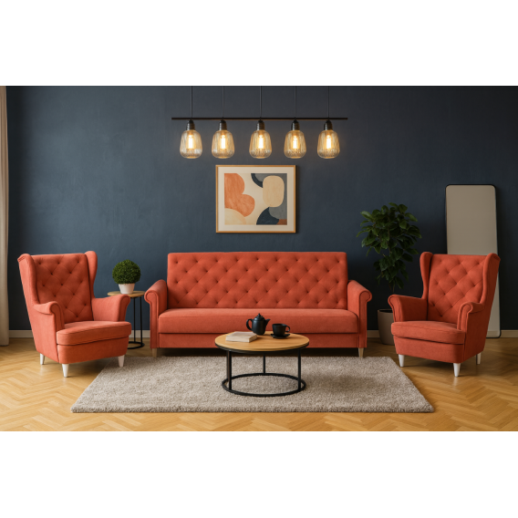 Nowocześnie pikowany zestaw mebli do salonu! Z pewnością przykuje uwagę gości!